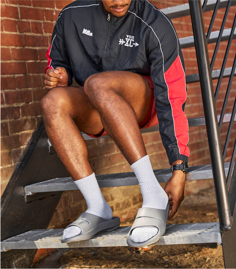 “Working from home has allowed me more flexibility in training, which means longer runs. Longer runs means a greater need for recovery. To maximize recovery I’ve been wearing OOFOS around the house so I’m ready to train hard again the next day.”